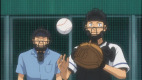 Since Tajima manages to read Junta's motions so well, he has Suyama steal a couple of bases. He's now on third! Too bad third runners mean nothing to Tosei. Hanai gets to skip off to the first base and then runs off to second. Tosei decide to have Oki walk because they HATE Oki and don't want to give him a chance to shine. So now everything's up to Mizutani, one of the biggest dorks on Nishiura! By seeing Mihashi's face, Mizutani gets some quick chucks from the whole 'Renren' thing, then proceeds to fool around. Suyama helpfully yells out "THIRD RUNNER!" in order to get Mizutani to pull himself together.