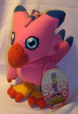 Behold! The glorious Birdramon plushie, the largest and furriest part of my Piyomon army. She's adorable for a fearsome Champion, isn't she? From Toysnjoys.com, 2003.