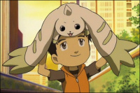 Terriermon sings this song together with his BFF Jian, so it's naturally the most heartwarming song in existence. First Jian sings about how happy Terriermon makes him and how he doesn't want him to get hurt, then Terriermon sings about how there are things only the two of them can do and that they can make it! The chorus is about the two of them being together forever.Lyrics (Jian) Fuwafuwa chiisa na watakumo mitai na Kimi wa ima ni mo asonde ikisou itsumo Sono hitomi ga sono egao ga Kono mune wo yasashiku suru kara Kizutsuite wa hoshikunai yo (Both) Bokutachi wa zutto ne Haru mo natsu mo aki mo fuyu mo Issho ni iyou Kono saki ni nani ga matteiru no ka na? My friend (Terriermon) Kirakira ooki na aozora mitai na Kimi to iretara zutto tanoshii sekai Bokura ni shika dekinai koto Konna ni mo "wakuwaku" shiteru yo Daijoubu sa yatte miyou!! (Both) Bokutachi wa zutto ne Asa mo yoru mo itsumo soba de Hanashi wo shiyou Kanashiku nattemo hitori ja nai kara My friend Bokutachi wa zutto ne Haru mo natsu mo aki mo fuyu mo Issho ni iyou Kono saki ni nani ga matteiru no ka na? My friend |