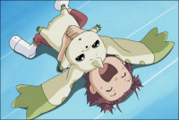 I'm sure you can all imagine what this song is all about! It's Shaochung and Terriermon's playtime, and Shaochung pulls at Terriermon's ears and generally abuses him with love, so once she turns her back, he grabs the opportunity to run for it! Then he feels bad for her and the process starts over again.